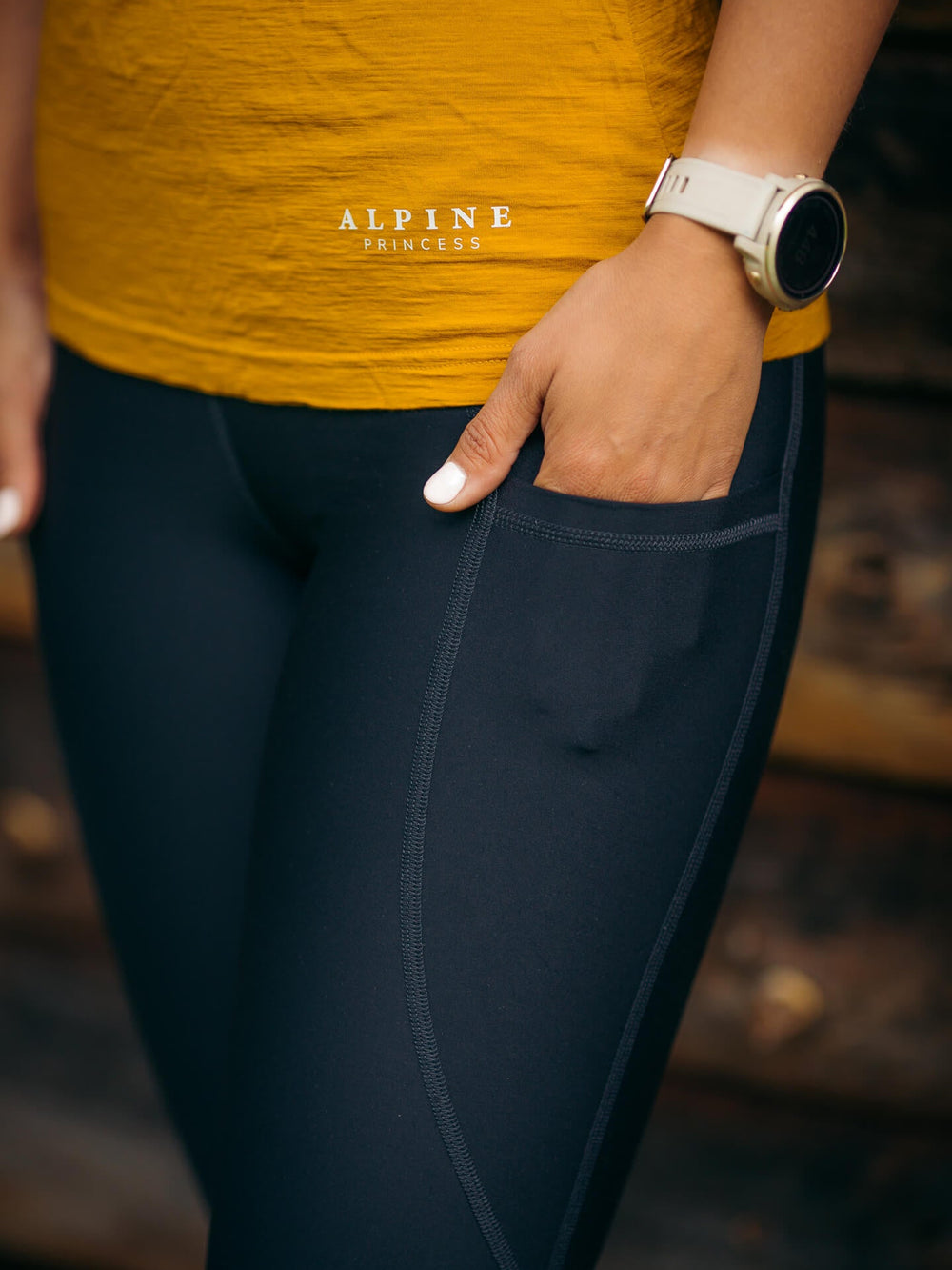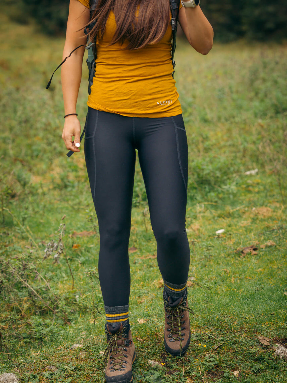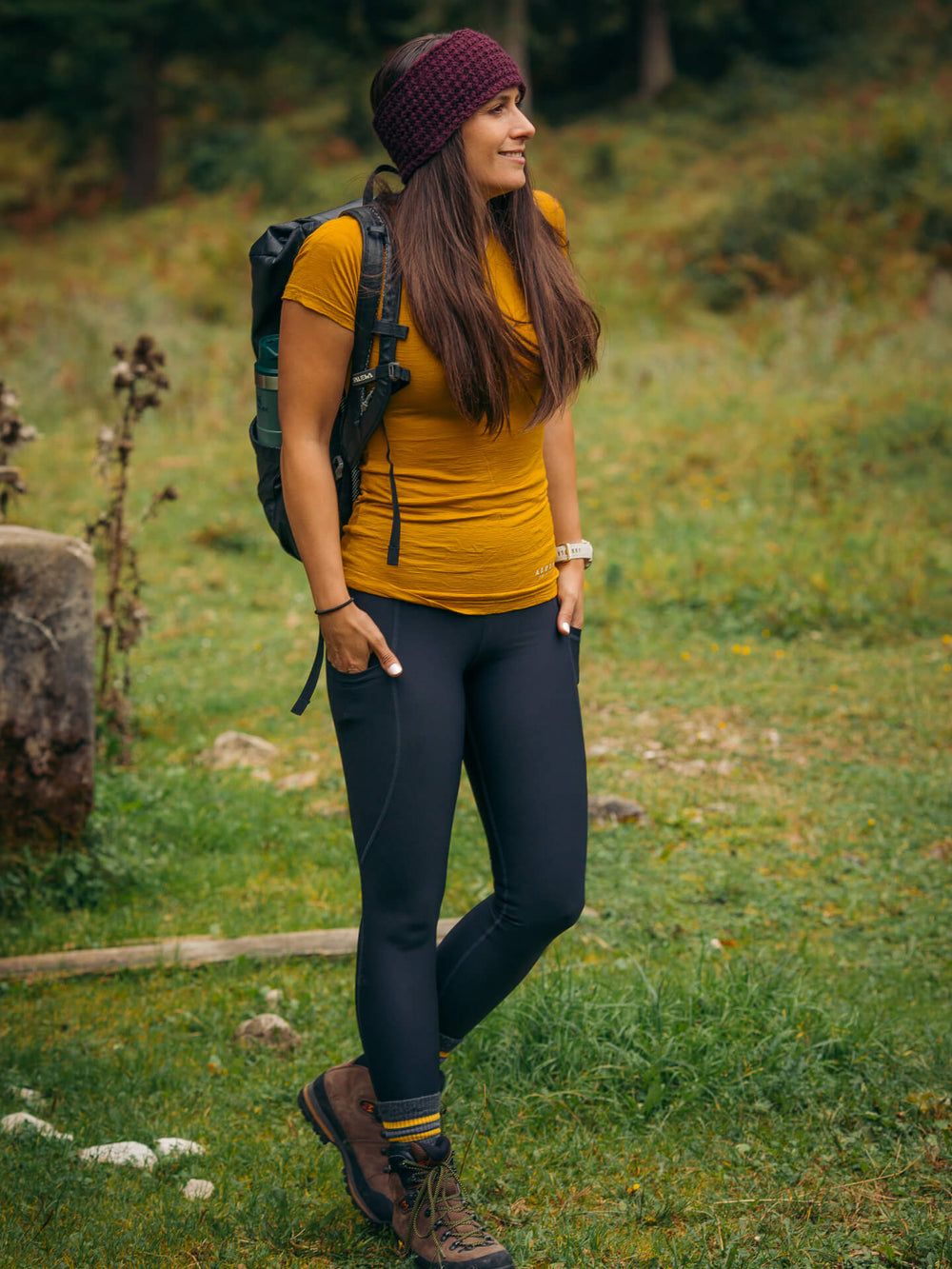 The perfect leggings for all your outdoor mountain activities. Hiking, climbing, trekking or running - these durable leggings feature a soft material with 4-way stretch for maximum comfort during your outdoor activities. The high waist, compressing fabric and flat seams ensure for a flattering fit!