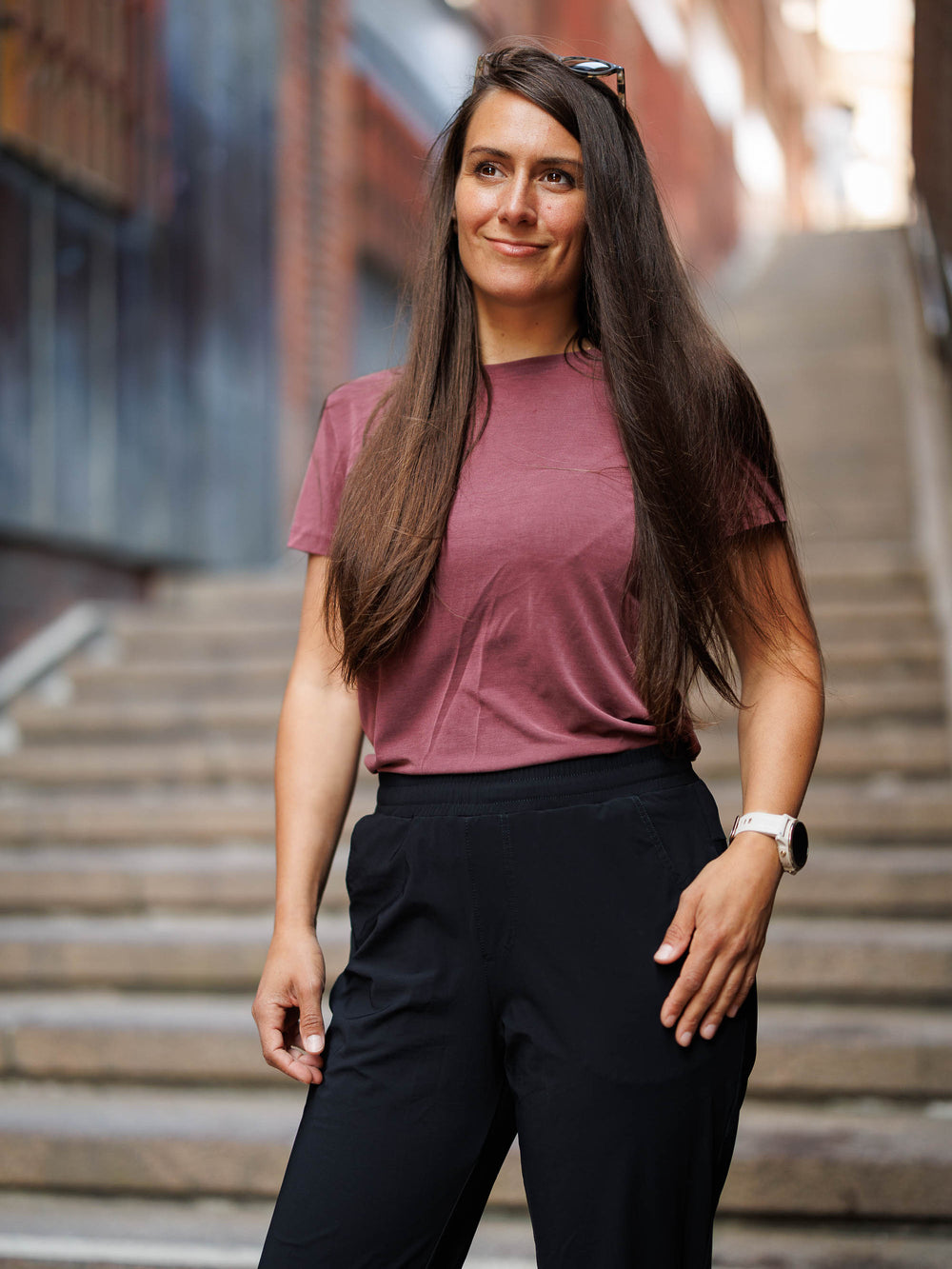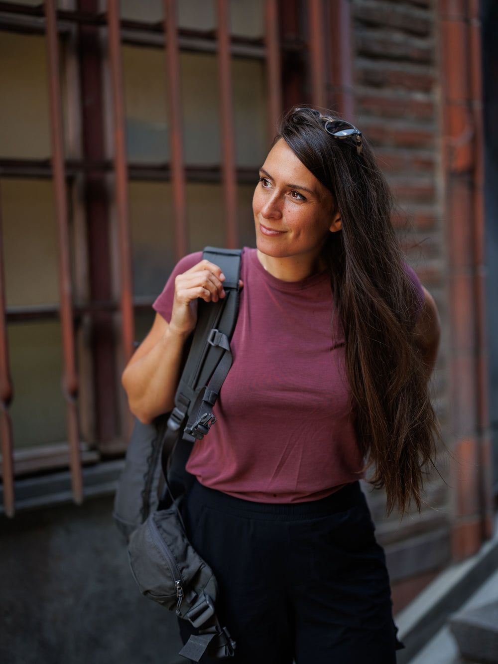 This super soft tee, crafted from a modal blend, offers exceptional comfort while minimizing environmental impact. Its comfortable fit and soft fabric create a relaxed look, perfect for casual workdays, traveling to a weekend escape, or unwinding between adventures. It withstands daily wear and breathes naturally when layered under your favorite fleece.
