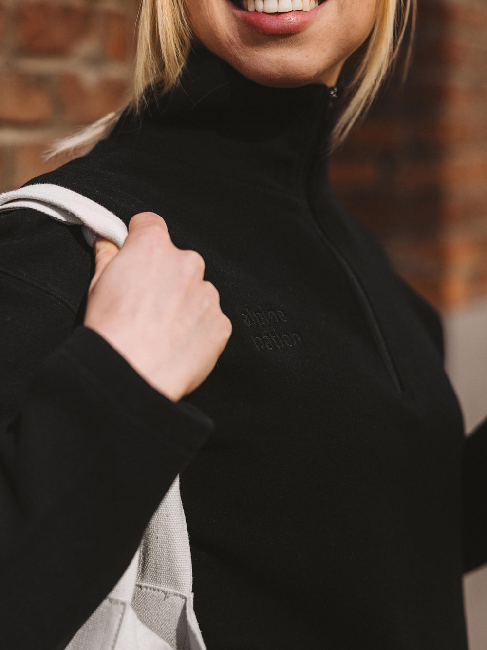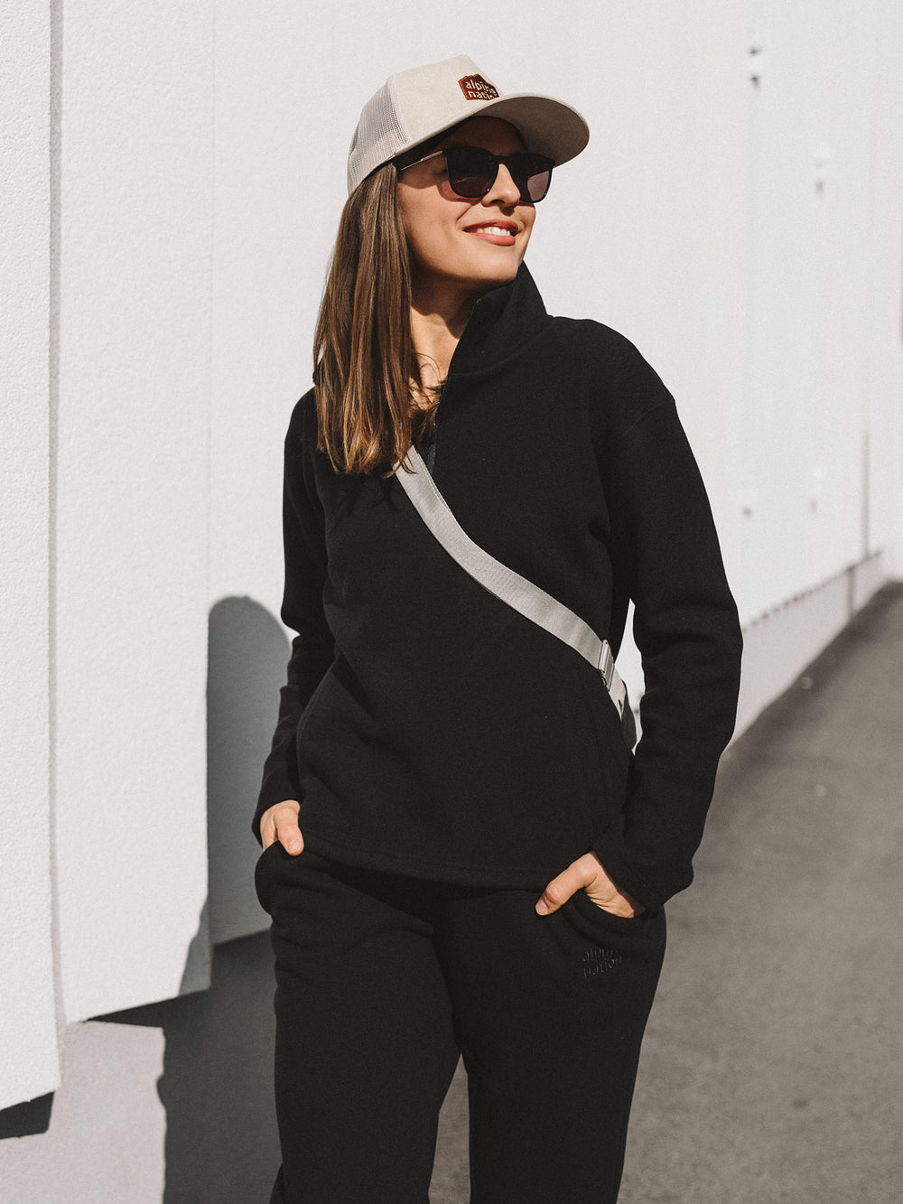 The half-zip neckline adds versatility, letting you adjust warmth as the temperature shifts. A relaxed, timeless silhouette makes it easy to layer, while an adjustable hem allows you to wear it both cropped or loose. Finished with subtle embroidery, it carries the signature Alpine Nation touch — refined, minimal, and thoughtfully designed.