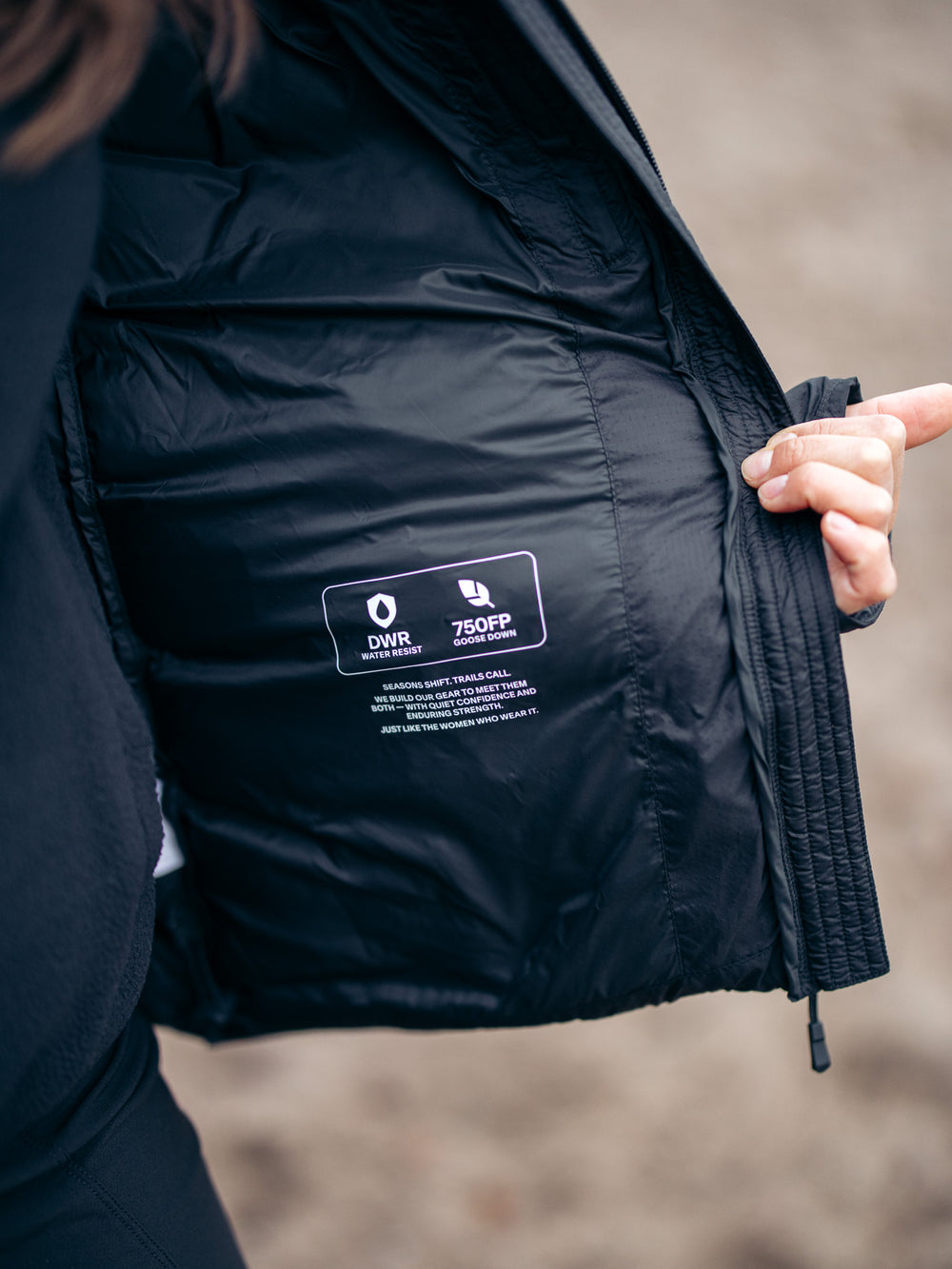 750 fill power Goose Down (200g fill) – premium insulation that delivers exceptional warmth while staying lightweight and low-profile, without excessive puffiness. The mix of down and feathers is 90/10. Responsible Down standard & Bluesign certified down.