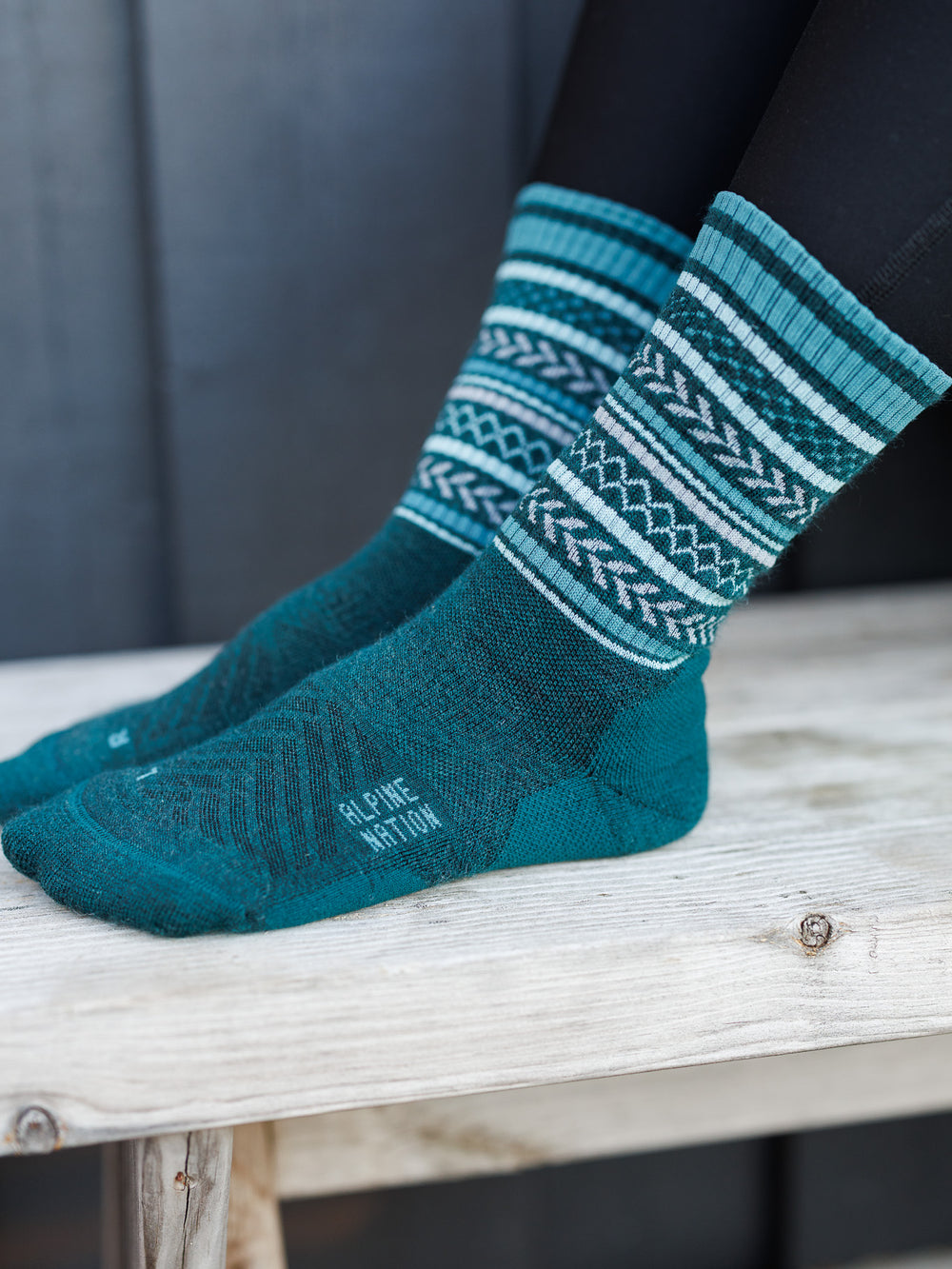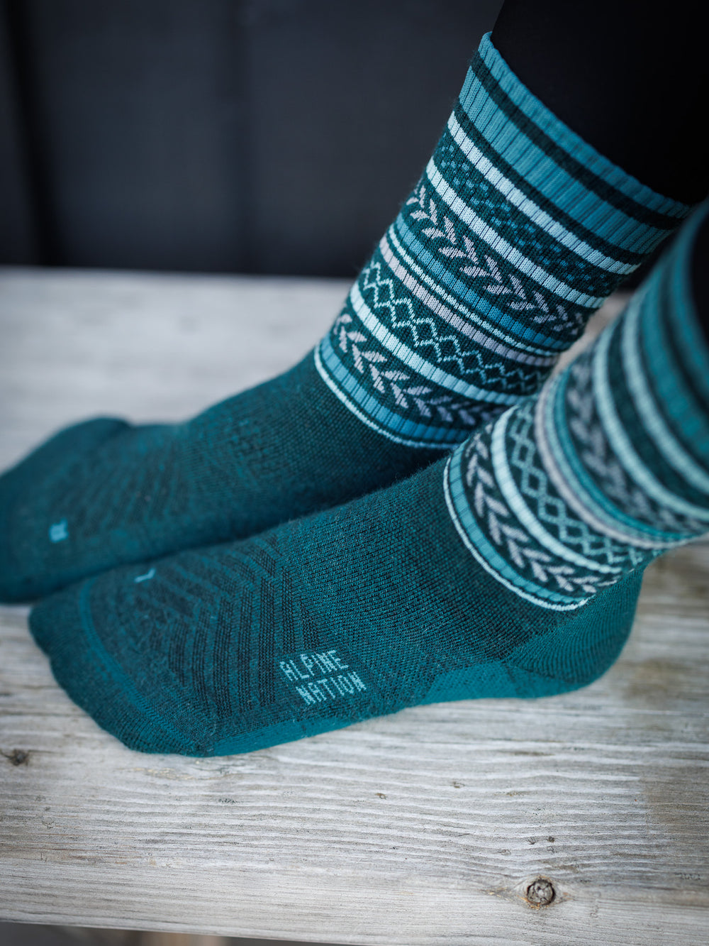 - All our Merino socks feature the "Alpine Nation" brand name