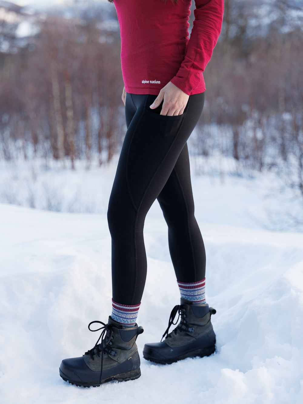 Diese Leggings bestehen aus unserem StayWarm-Material - kompressiv, langlebig und schnell trocknend, aber das Beste ist, dass sie innen aufgeraut sind, um Sie während Ihrer Winterabenteuer warm zu halten. Sie sind mit einer DWR (Durable Water Repellent) Beschichtung versehen, die dazu führt, dass Wasser abperlt und vom Stoff abrollt, sodass Sie länger trocken bleiben. Jetzt mit zwei zusätzlichen Taschen!