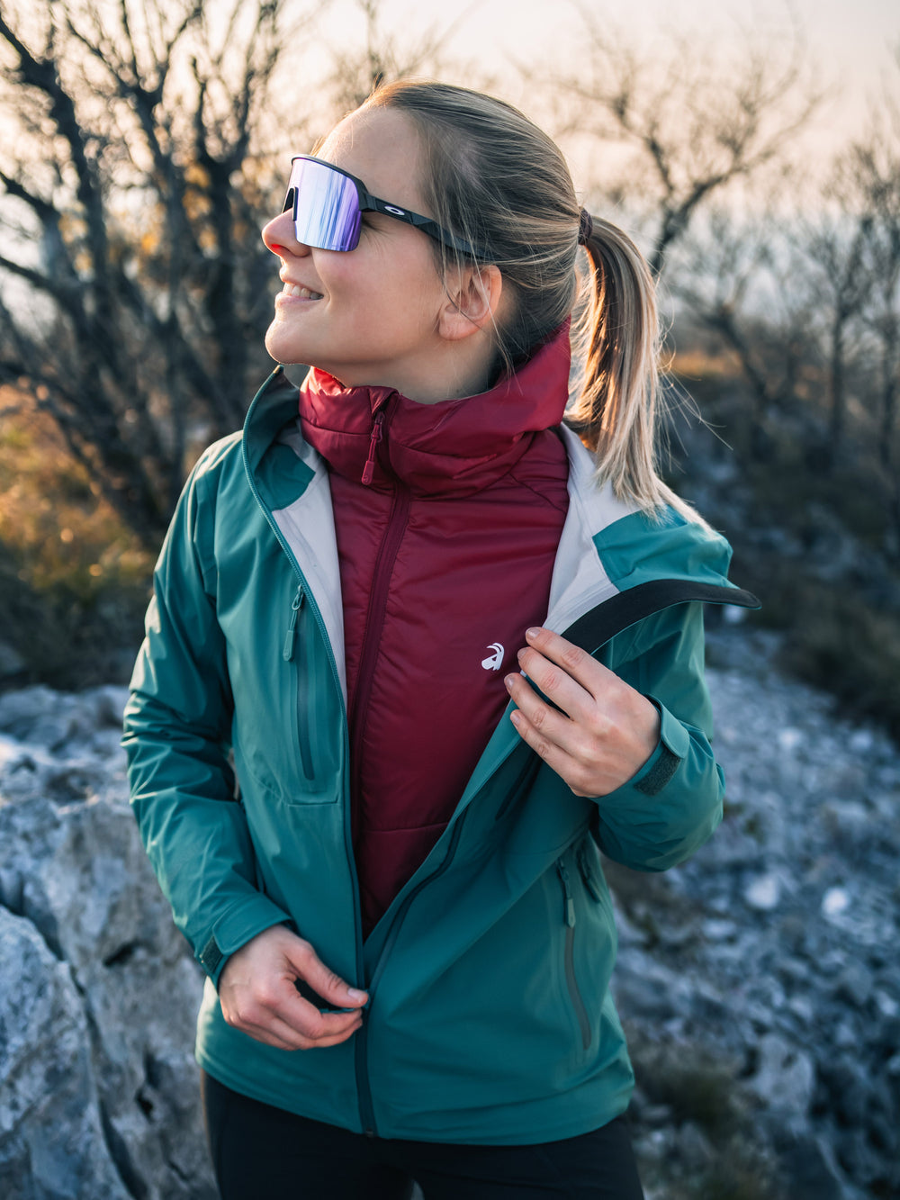 - Belüftung unter den Armen mit YKK® wasserabweisenden Reißverschlüssen – verstellbarer Luftstrom zur Temperaturregulierung während der Bewegung