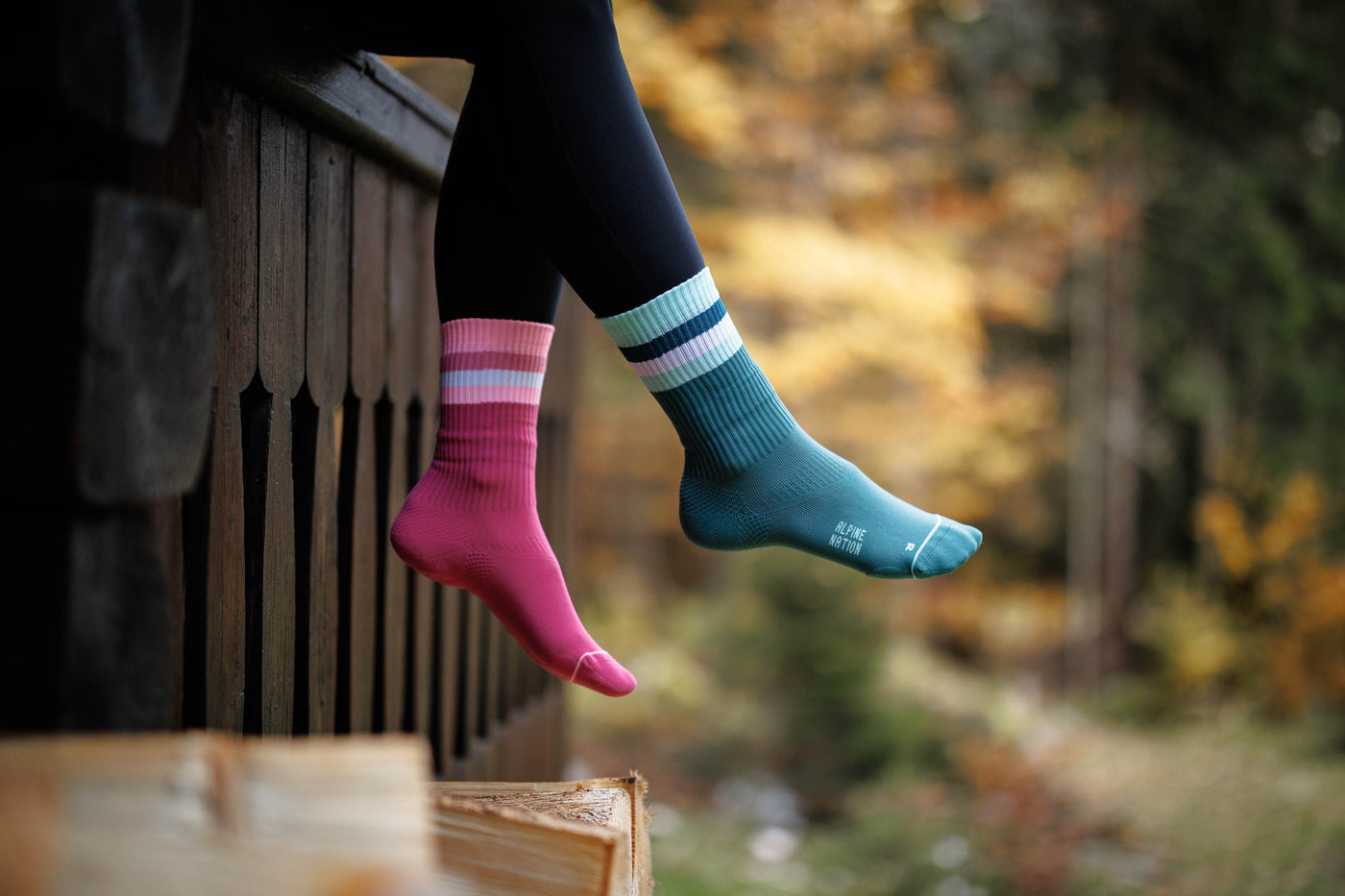 Entdecke die limitierten Summit Socks, inspiriert von Anda Arko und ihrem abenteuerlichen Geist. Erhältlich in zwei atemberaubenden Designs – Lagoon und Sunrise – vereinen diese Socken mutigen Stil und erstklassige Performance bei jedem Schritt.