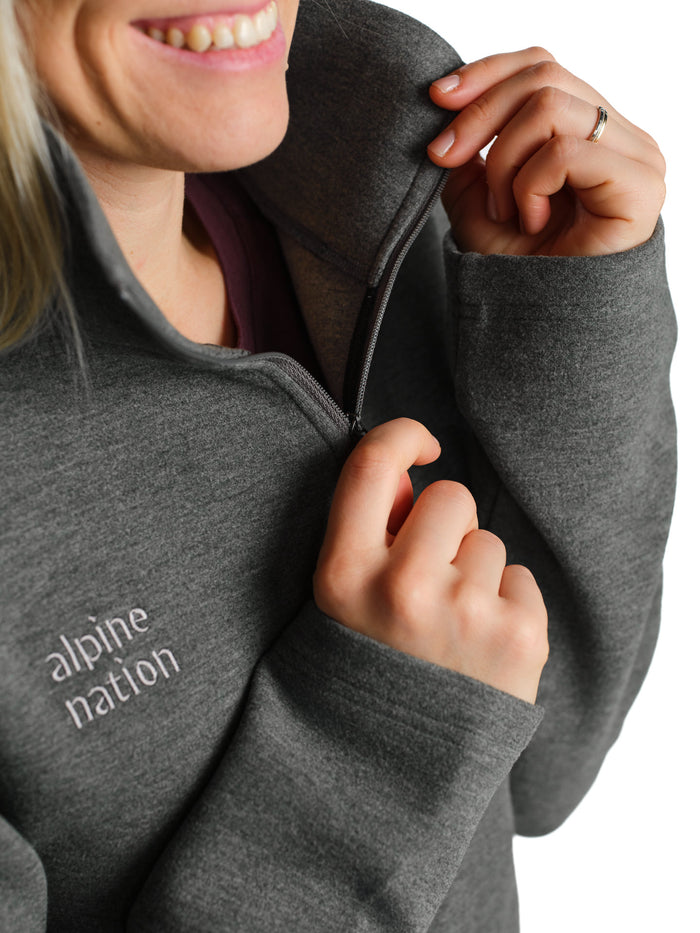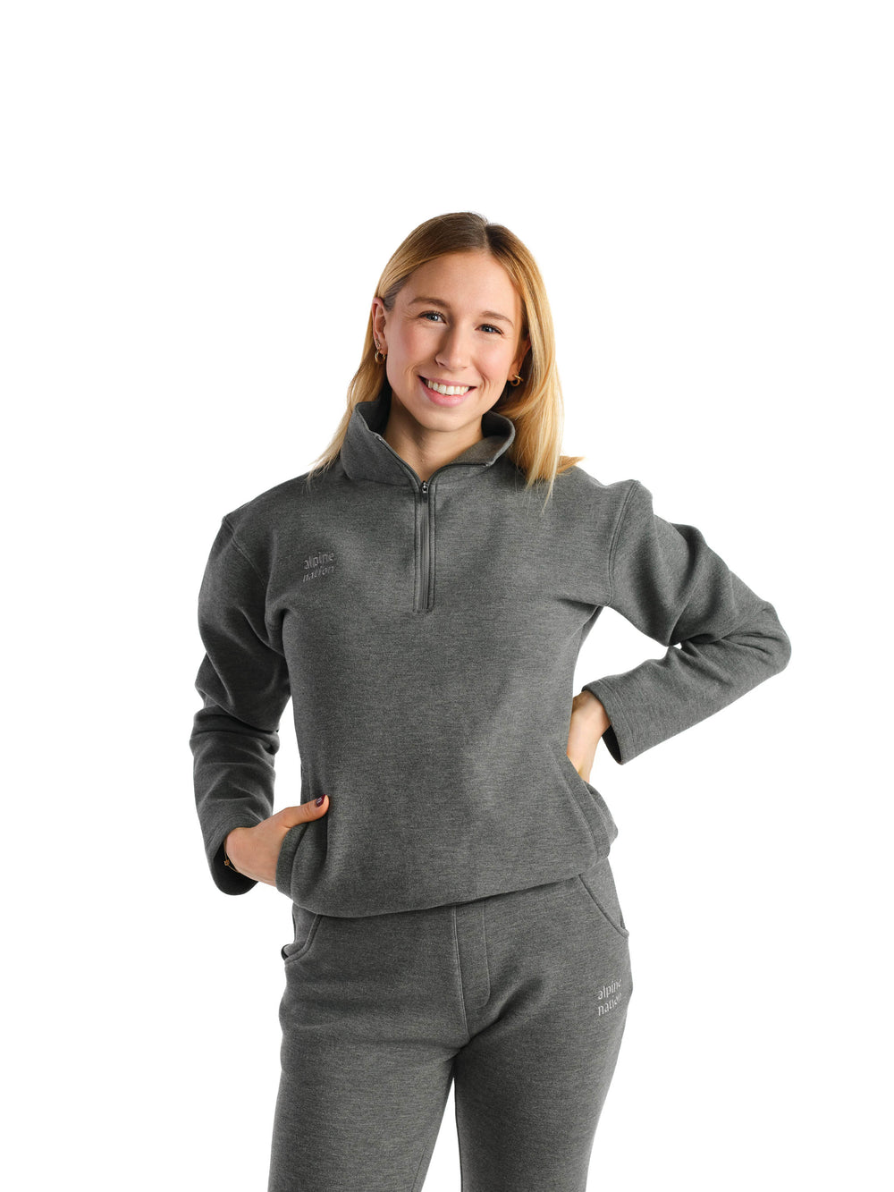 La scollatura con mezza zip aggiunge versatilità, consentendo di regolare il calore in base alle variazioni di temperatura. Una silhouette rilassata e senza tempo lo rende facile da indossare a strati, mentre l'orlo regolabile consente di indossarlo sia corto che ampio. Rifinito con un delicato ricamo, porta il tocco distintivo Alpine Nation : raffinato, minimale e dal design curato.