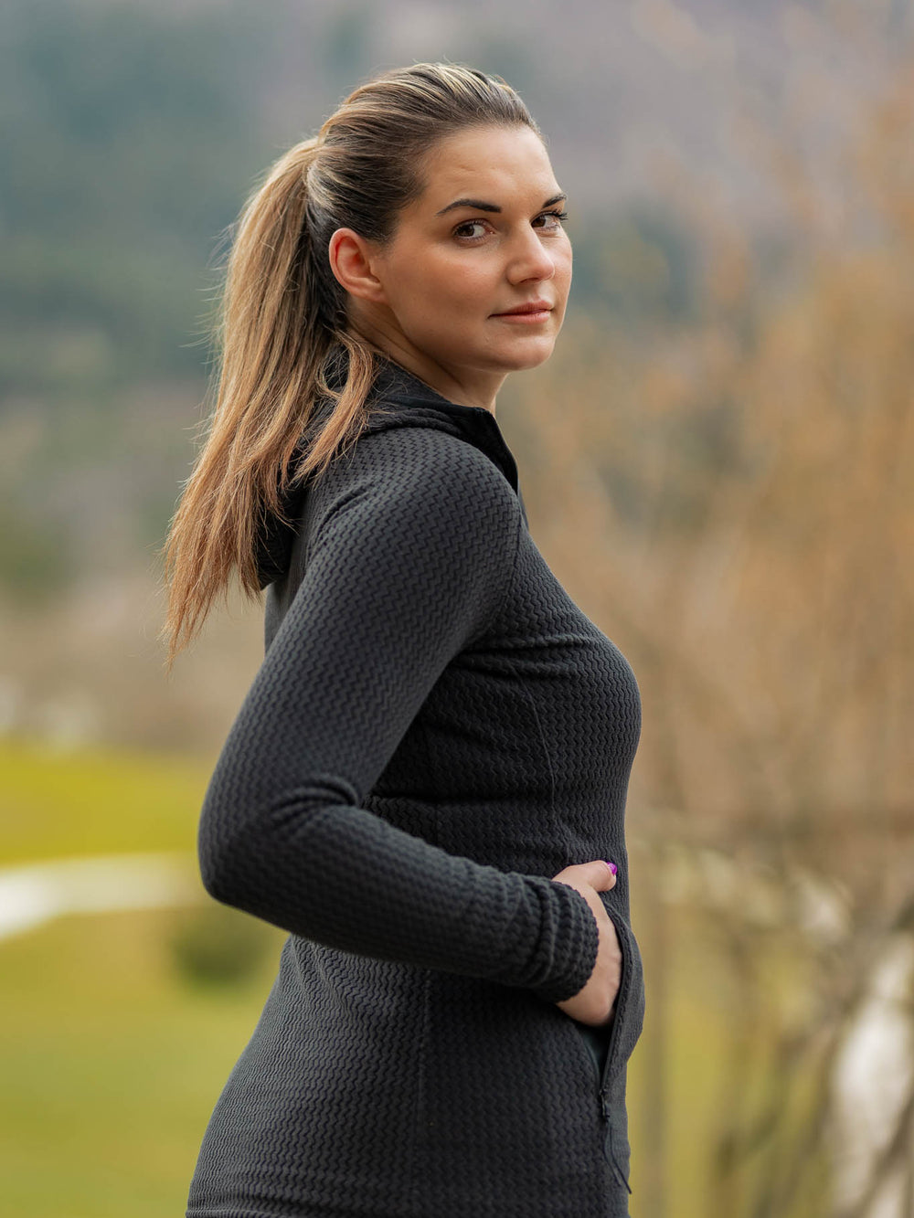 - Slim fit with full zip for temperature regulation and easy layering