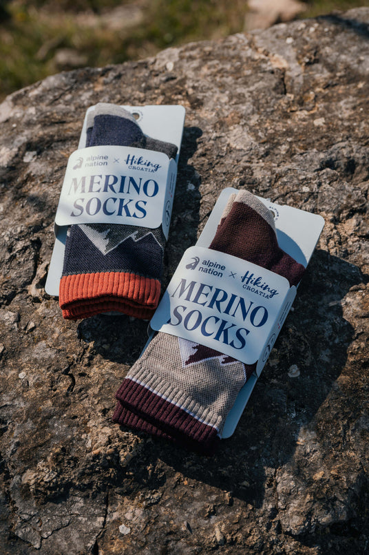 Hiking Croatia collab. Warm hiking socks with 80% merino wool content.