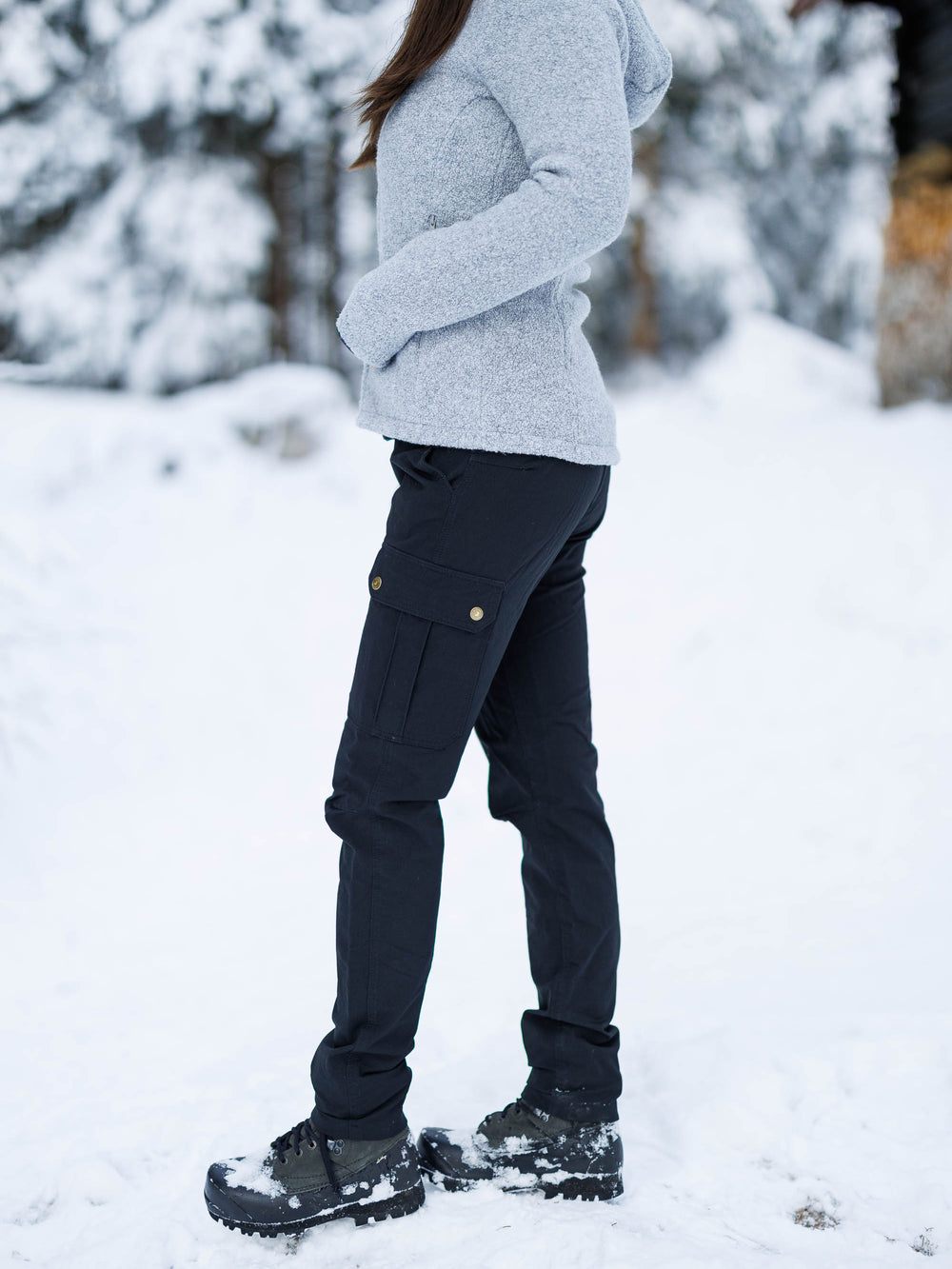 Tough enough for mountain trails, comfortable enough for everyday. The Venture Cargo Pants feature a stretchy waistband with drawstring, a flattering feminine fit — crafted for outdoor performance with a clean, versatile look that transitions effortlessly from trail to town.