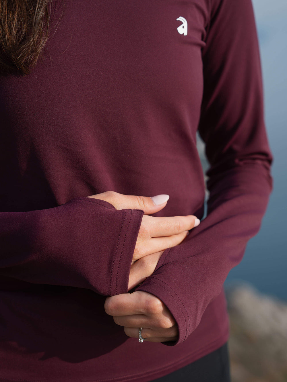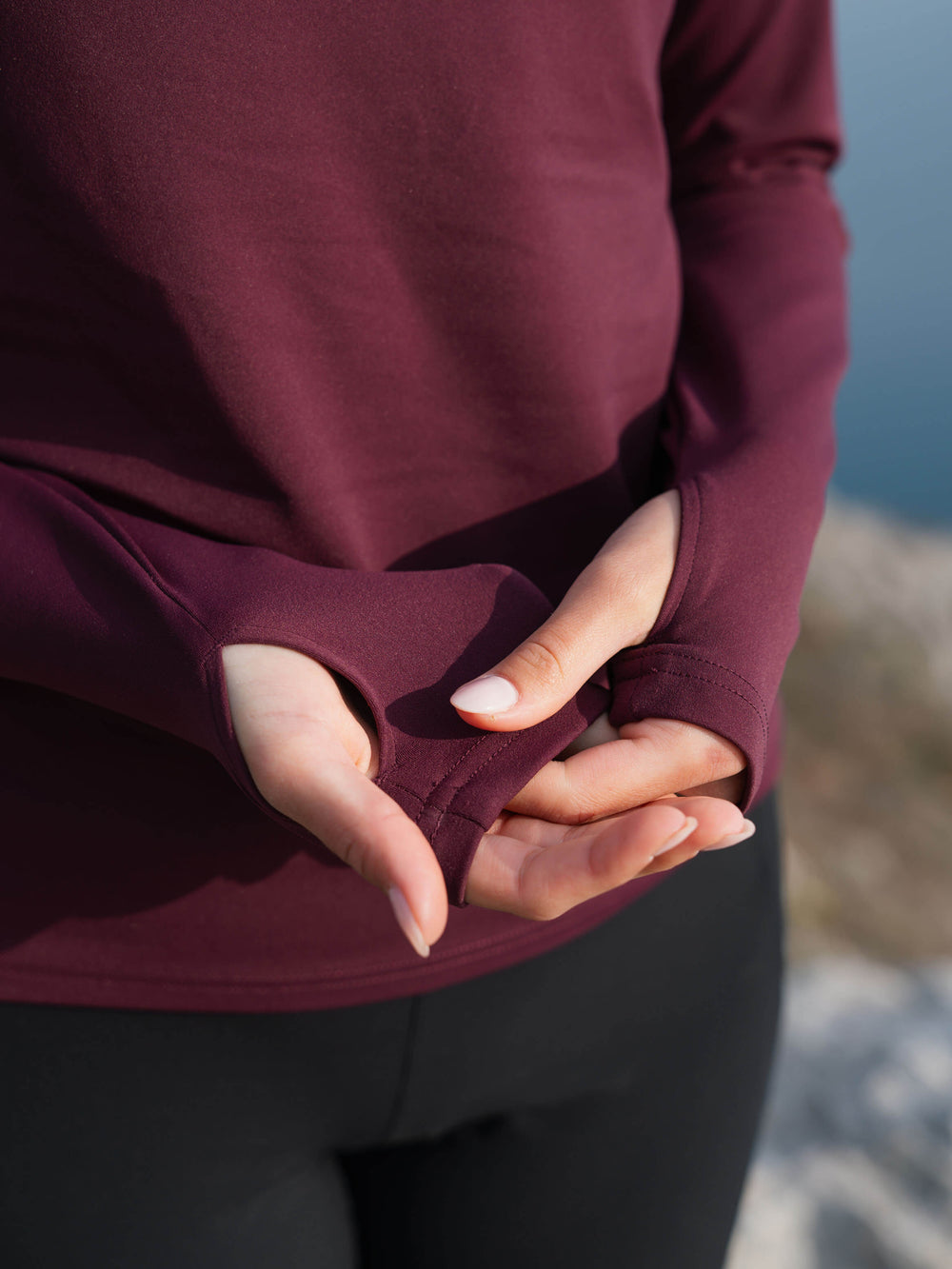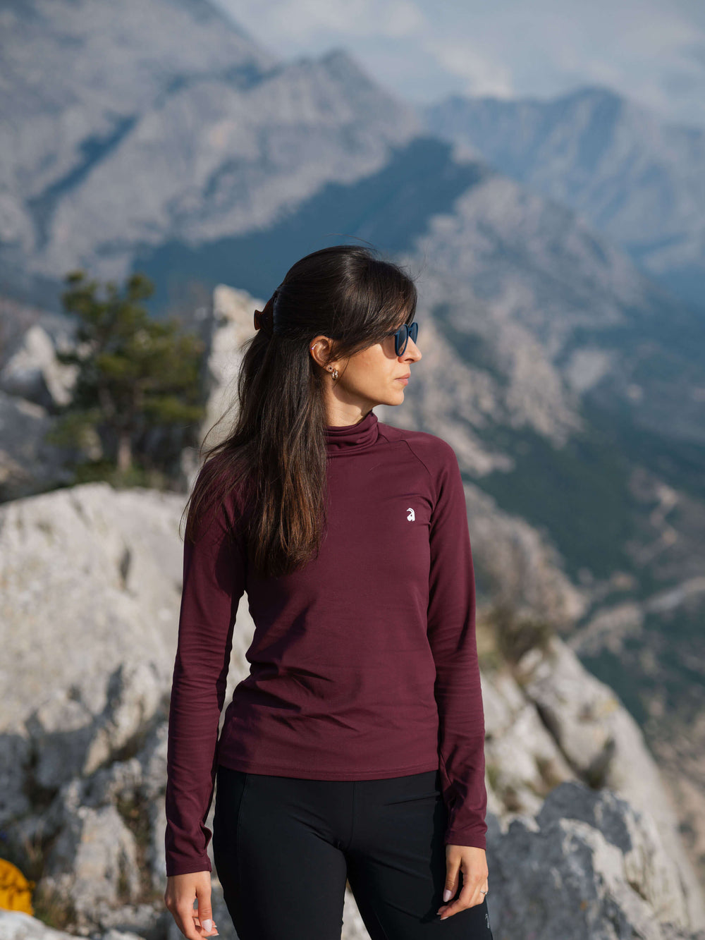 Our Momentum sweater features a mock neck which is designed to provide a little extra warmth for your early morning runs. Semi-fitted for dynamic layering under a vest or a jacket and topped with a buttery-soft, slightly brushed fabric, this will become your go-to for trail running and city runs.