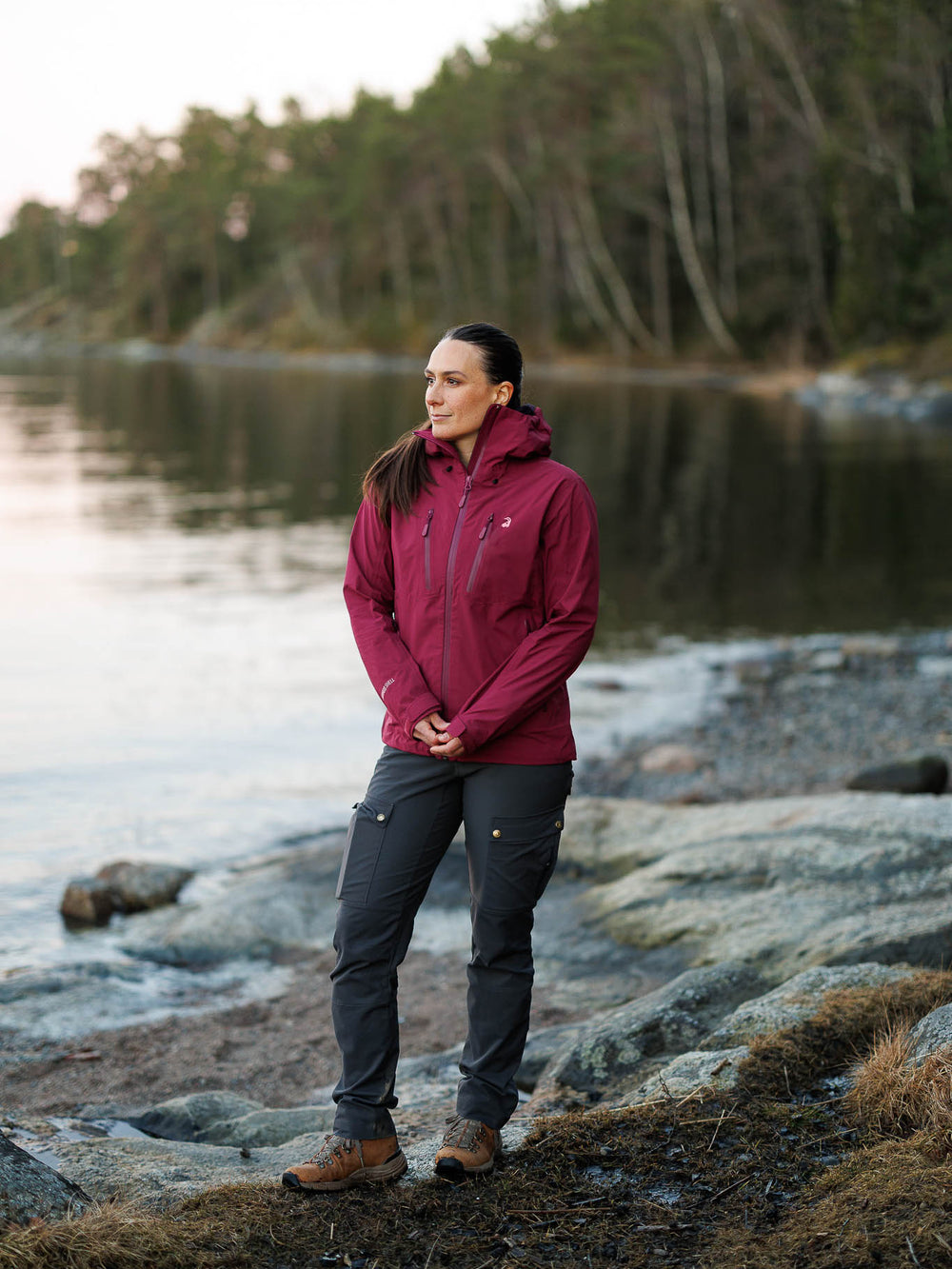 Lahka, a trpežna zunanjost zagotavlja vzdržljivost tudi ob pogosti uporabi z nahrbtnikom ali plezalnim pasom. Laminirana 3-slojna zasnova povečuje mehansko odpornost in podaljšuje življenjsko dobo izdelka, obenem pa zmanjšuje težo in volumen. Jakna zavzame minimalno prostora v nahrbtniku, zato boš vedno vedno pripravljena na hitro poslabšanje vremena.