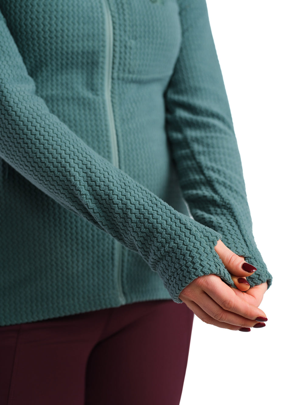 - Notranji vzorec z mikro žepki, ki zadržujejo toploto, a ohranjajo odlično zračnost. Od klasičnih flisov je približno polovico lažji.