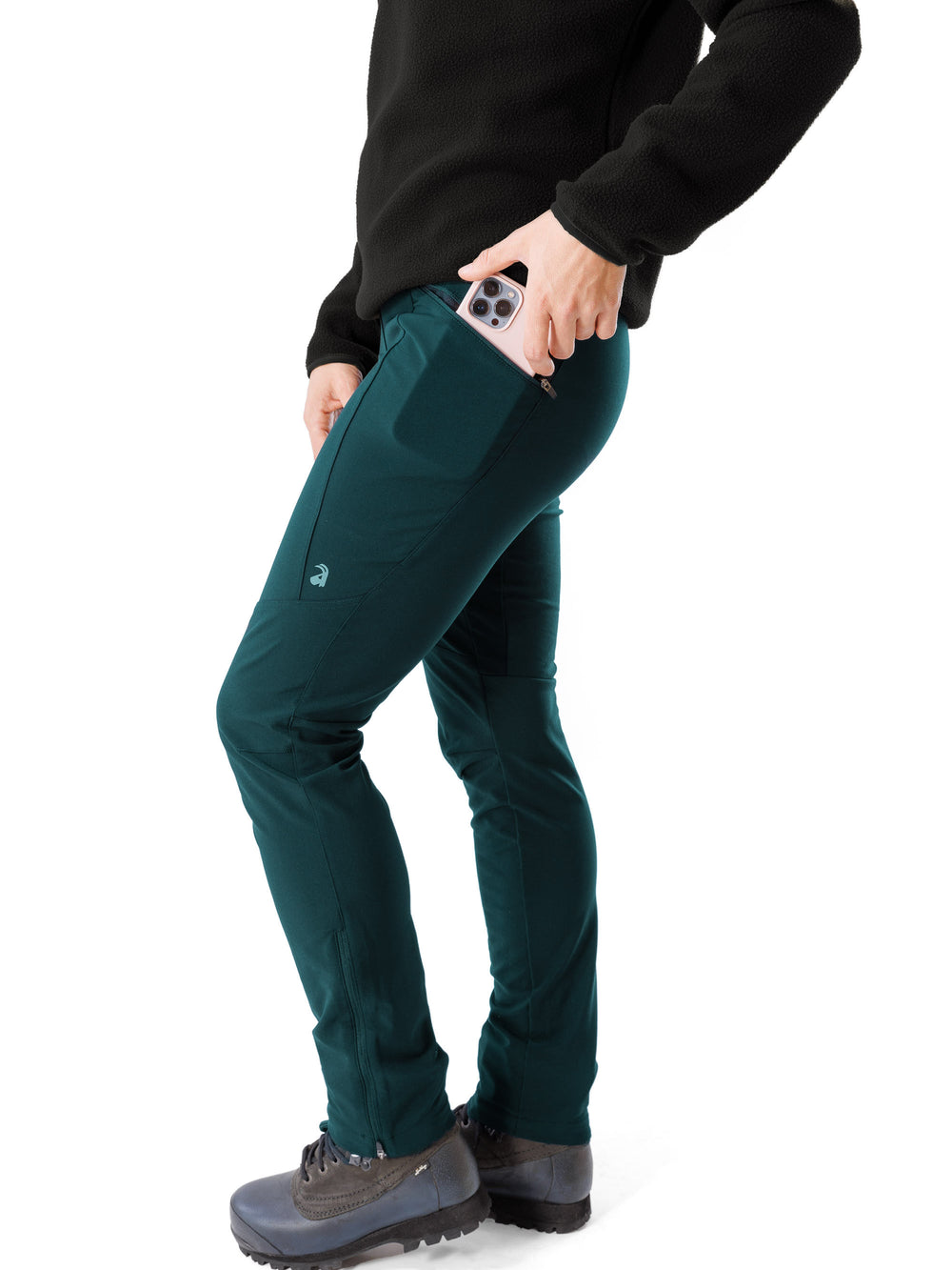 - Prilagodljivi hlačnici, kar omogoča, da lahko hlače nosimo v kombinaciji z različnimi pohodnimi čevlji
