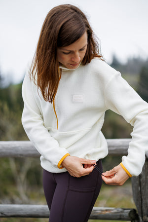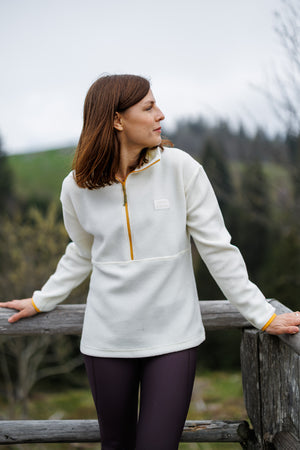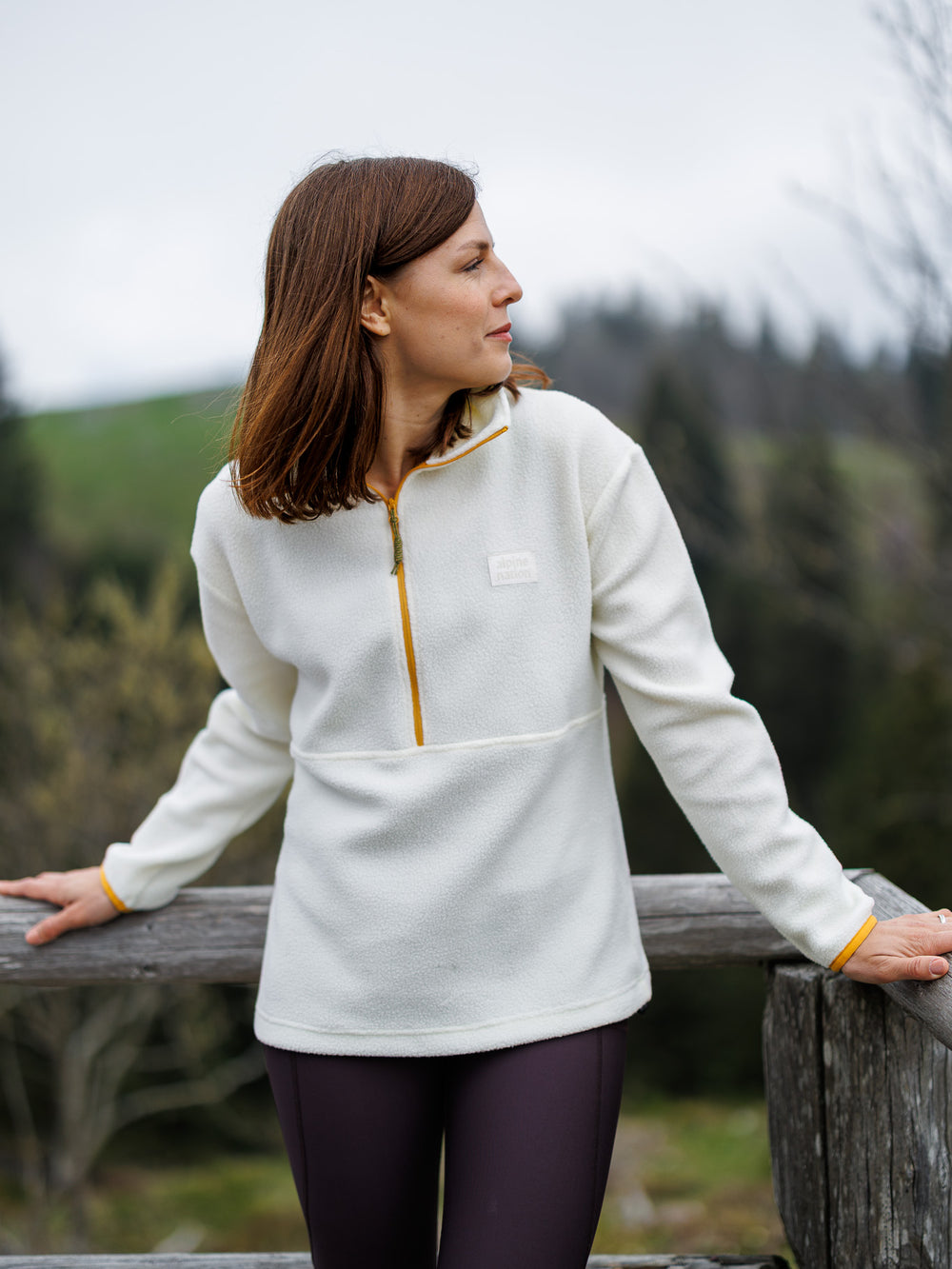 - Oblikovan kot pulover z zadrgo do polovice za lažje oblačenje.