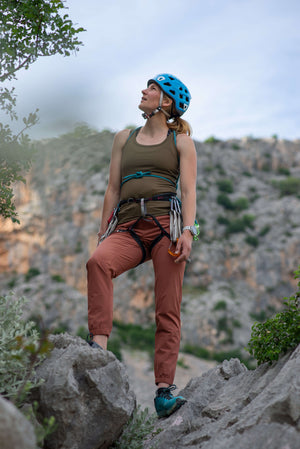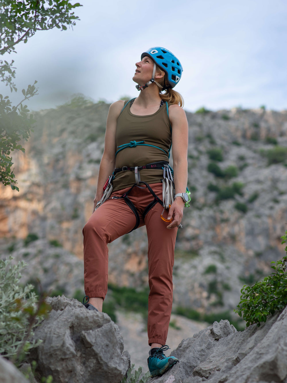 Pas je elastičen, prijeten ob stiku s kožo in brez motečih gumbov in zadrg, ki bi žulili, če hlače nosimo skupaj z nahrbtnikom ali plezalnim pasom.